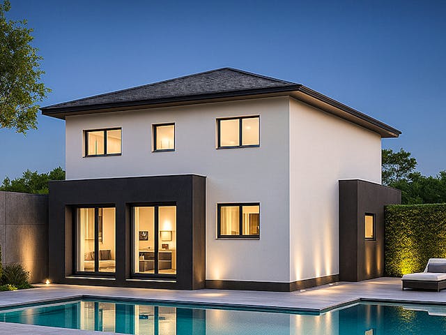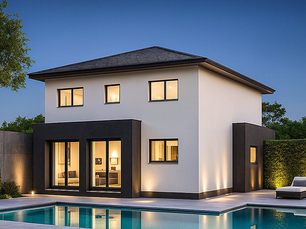 Die Stadtvilla 143 überzeugt durch moderne Architektur, klare Linien und eine bestens durchdachte Raumaufteilung. Im Erdgeschoss steht der rund 39 m² große Wohn-, Ess- und Kochbereich im Mittelpunkt des Familienlebens. Dank der offenen Gestaltung verschmelzen Kochen, Essen und Wohnen zu einem großzügigen Raum, der für gemeinsame Mahlzeiten, Spiel und Entspannung gleichermaßen geeignet ist. Ein Gästezimmer mit über 11 m² bietet zusätzliche Flexibilität – ob als Arbeitszimmer, Spielraum oder Übernachtungsmöglichkeit. Ergänzt wird das Erdgeschoss durch einen Hauswirtschaftsraum sowie ein Gäste-WC.