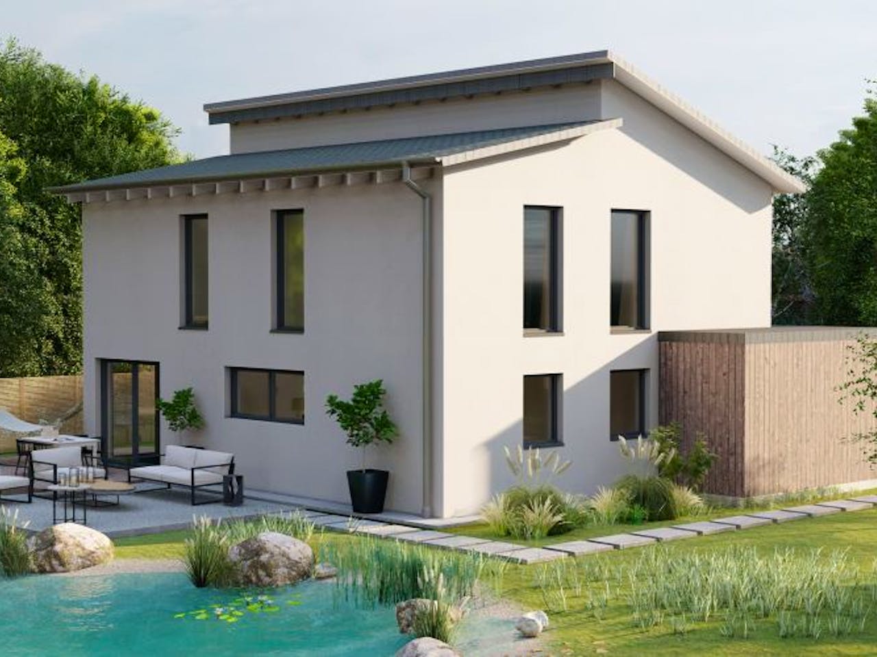 Mit seinen zwei versetzten Pultdächern hebt sich das Econ Haus Kaisersesch architektonisch und einzigartig vom klassischen Satteldach Haus ab.