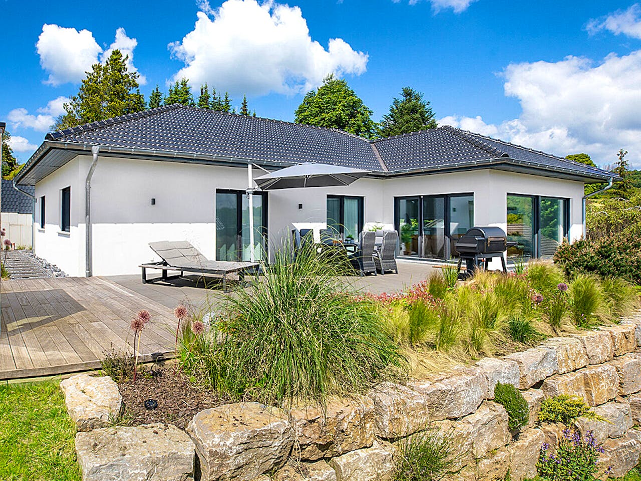 Ebenerdig, lichtdurchflutete Wohnräume, vorteilhafter Zugang zum Garten und vieles mehr machen den Walmdachbungalow „Vintra“ zum aktuellen Trendobjekt. Hier zählt zum einen der Genuss des Augenblicks und gleichzeitig wird heute schon an morgen gedacht. Denn alles spielt sich auf einer Ebene ab. Das fördert nicht nur das harmonische Miteinander, sondern erweist sich auch als äußerst praktisch: kurze Wege und schnell erreichbare Bereiche machen den Alltag zu einem komfortablen Vergnügen. Hier lässt es sich ideal leben – bis ins hohe Alter.