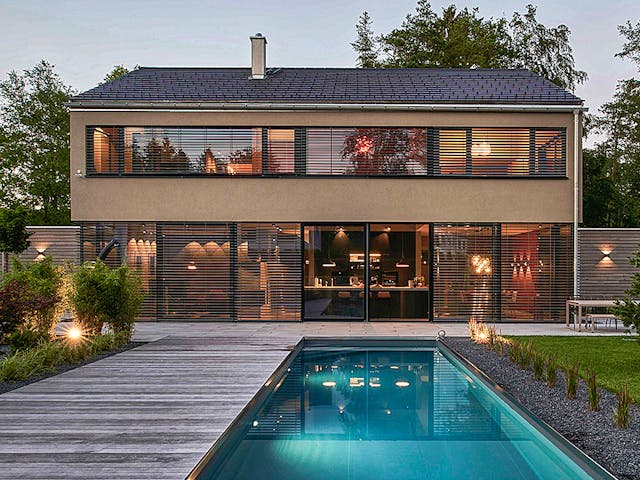 Ein Effizienzhaus 40 Plus verbraucht im Vergleich zum Referenzhaus 100 > 60 % weniger Energie. Sie müssen für den Hausbau mit Mehrkosten von ~ 13,5 % rechnen, die sich aber mittelfristig auszahlen. Es verfügt im Vergleich zum Effizienzhaus 40 über weitere Komponenten, wie beispielsweise eine Lüftungsanlage mit Wärmerückgewinnung, eine Anlage, mit der auf Basis erneuerbarer Energien Strom erzeugt werden kann und ein Batteriespeichersystem, mit dem überschüssige Energie eingespart werden kann.