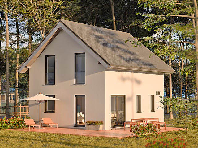 *Preis gilt für die Ausbaustufe "schlüsselfertig" für die Basisvariante des Hauses (jeweilige Basisvariante einfügen) ab Oberkante Bodenplatte bzw. Kellerdecke für Bauort Deutschland; lt. Preisliste 08/2023; ohne Sonderausstattung; Abbildungen können aufpreispflichtige Sonderausstattungen enthalten. EH 40 tauglich. Die angegeben Außenmaße beziehen sich auf die Außenmaße des Grundbaukörpers.