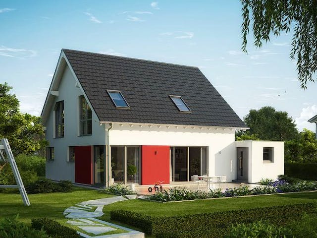 Luna Plus besticht durch eine moderne Umsetzung des Wohnkonzeptes. Architektonische Gestaltungselemente wie die Eckverglasung in Wohnbereich und Home-Office oder die markanten Fensterelemente im Dachgeschoss verleihen dem Haus eine besondere Optik.