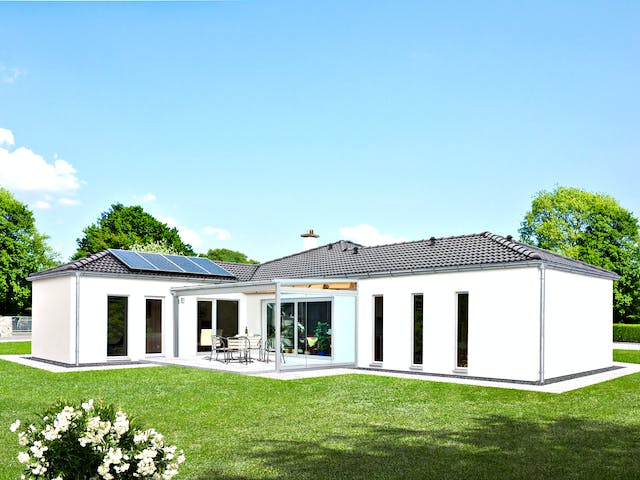 Schön & wohnlich: Bungalow nach eigenem Geschmack In einem Teil des barrierefreien Hauses Kochen, Arbeiten und Essen, von dort auf kurzem Weg in den gemütlichen Wohnbereich oder den privatesten Teil, für das Waschen und Schlafen. Das ist einfach und sehr praktisch. Zum Beispiel für ein Paar der Generation 50 plus. Oder jüngere Menschen. Denn was will man mehr, als in aller Ruhe im eigenen Zuhause ein bisschen arbeiten und ansonsten das Leben genießen.